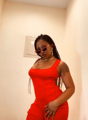 With short sleeves with a peekaboo front for the top & a bottom ties up on the side